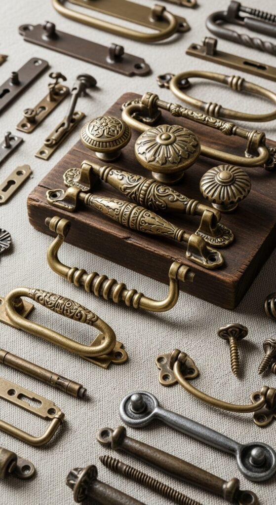 Updating cabinet pulls to vintage brass or wrought iron gives character without a full remodel.