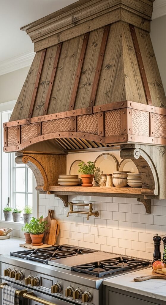 A custom hood in wood or metal becomes a statement piece while hiding ventilation.