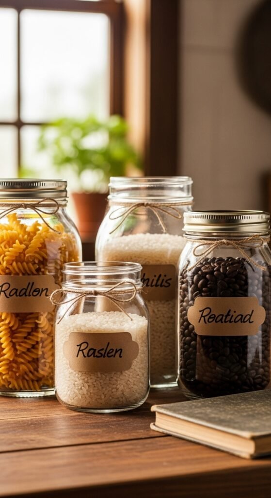 Keep counters neat by storing pasta, rice, or coffee beans in clear, labeled jars.