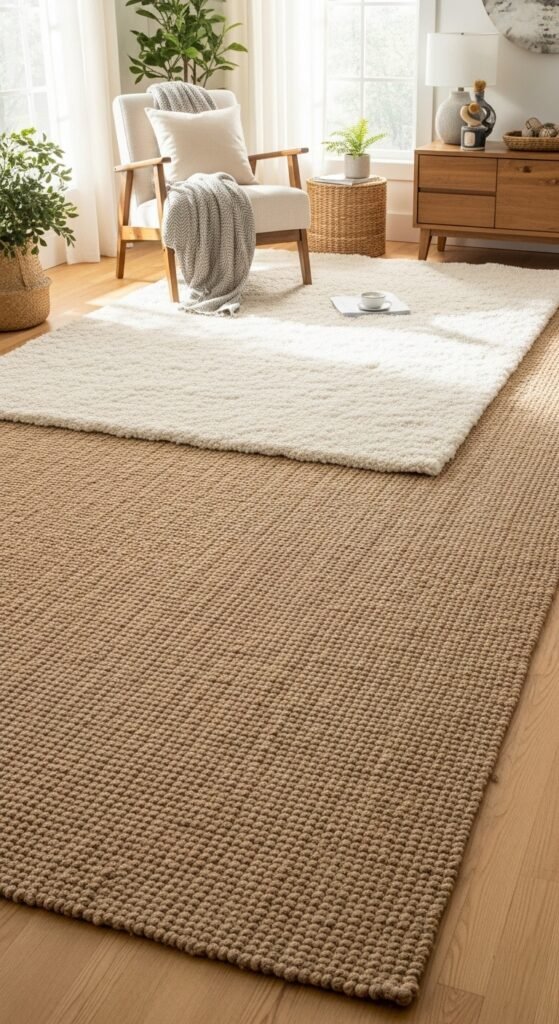 Place a cotton rug on top of a jute runner to soften hard floors and add warmth.