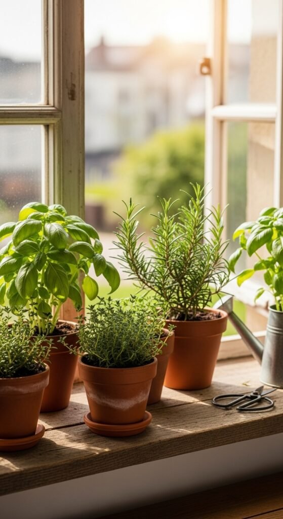 Grow basil, rosemary, or thyme on your windowsill to keep fresh flavors within reach.