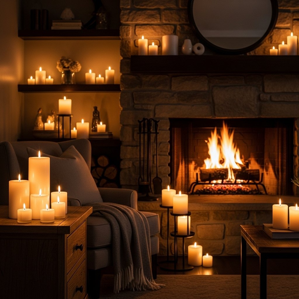 Nothing sets the mood like soft flickering candlelight. Cluster candles of different heights on nightstands, shelves, or even floor stands. If you have a fireplace, highlight it with minimal decor to make it a glowing focal point.