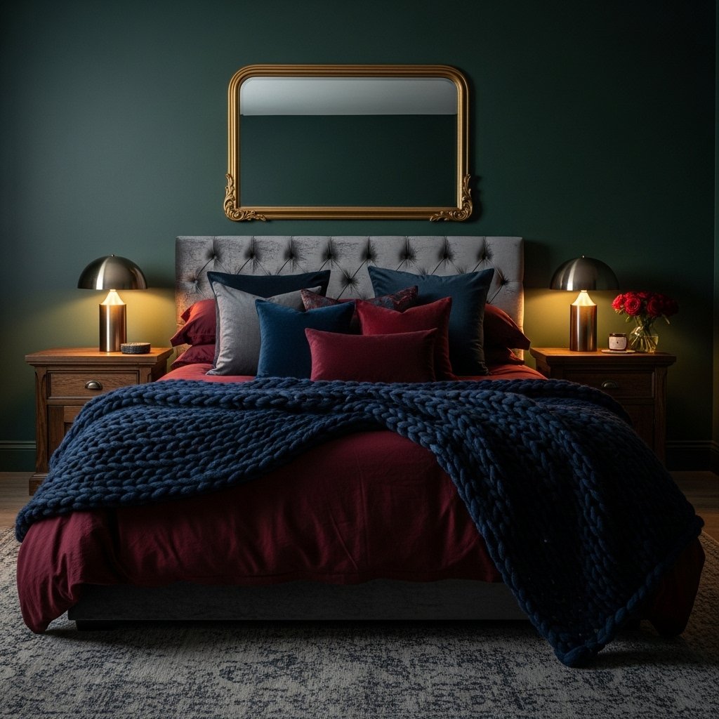 Romance thrives in rich, saturated tones. Think charcoal, navy, burgundy, and emerald green for your walls or bedding. These hues create a cocoon-like atmosphere that feels intimate and luxurious. Pair them with metallic or wooden accents to balance the look.