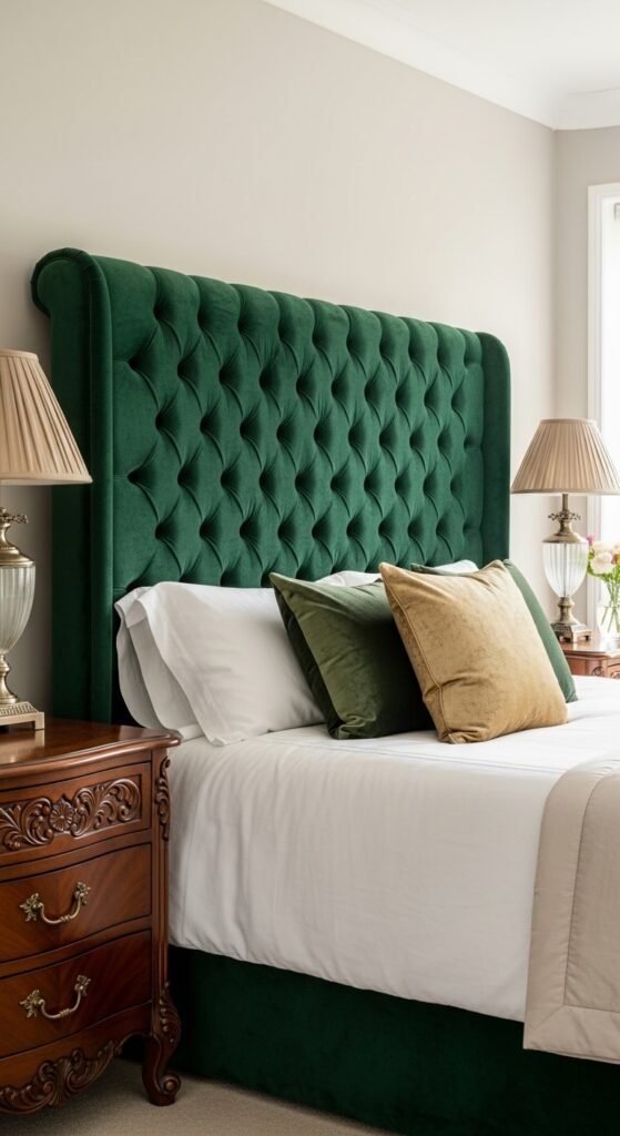 Your headboard is the centerpiece of your bed. Choose something that feels luxurious—like a tufted velvet headboard, a carved wooden design, or even a simple upholstered style.