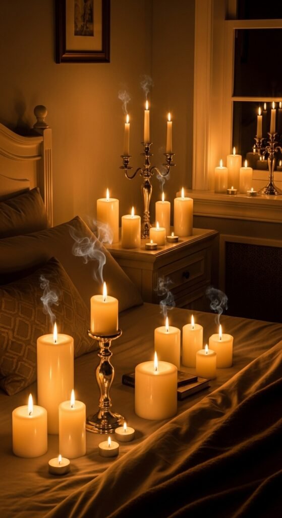- Use scented candles with fragrances like rose, vanilla, or sandalwood.