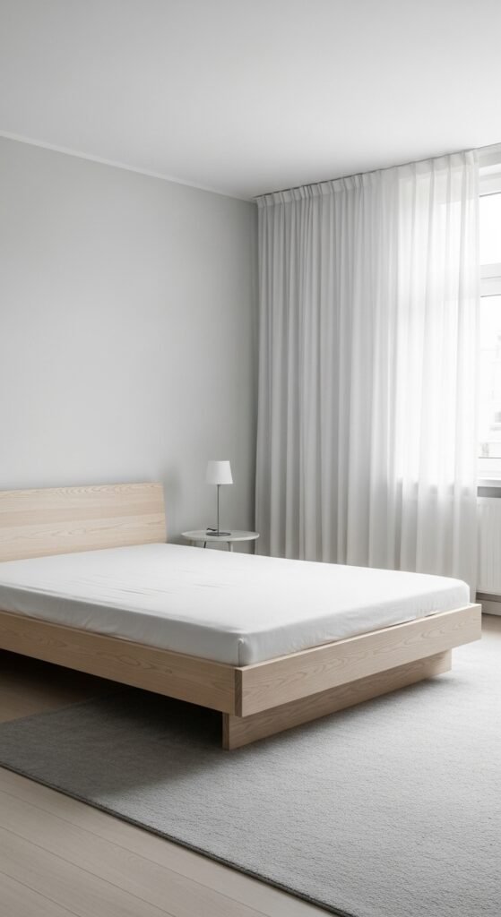 Bulky bed frames can overwhelm a small room. Instead, go for platform beds or frameless beds that sit closer to the ground. This creates an airy, open feel and makes the ceiling appear higher.