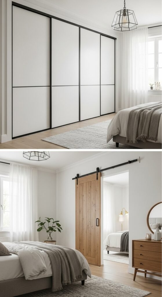 Traditional swinging doors take up valuable floor space. Sliding doors for wardrobes or even the main entrance to the bedroom can free up extra room while adding a modern touch.