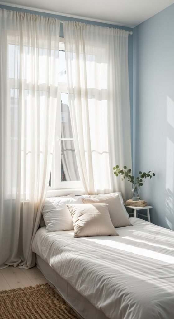 Natural light instantly makes a small bedroom feel larger. Keep window treatments light and airy—think sheer curtains or blinds—to let in maximum sunlight.